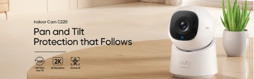 The Anker Eufy Indoor Cam C220 is a smart and powerful indoor security camera designed for modern homes and small businesses. With its 2K ultra-clear resolution and smooth 360° pan-tilt coverage, this camera can monitor an entire room with sharp detail and almost no blind spots. Whether you want to watch your home, office, shop, baby room, or pets, the C220 gives you real-time monitoring directly from your smartphone. The built-in AI detection intelligently identifies human movement and sends instant alerts to your phone, helping you stay aware of important activity anytime, anywhere. Even at night, infrared night vision ensures clear video so your space stays protected 24/7. Two-way audio allows you to speak with family members, comfort pets, or warn unwanted visitors through the Eufy Security app. With support for local microSD storage up to 128GB and smart voice assistant integration, the C220 delivers a reliable, affordable, and easy-to-use security solution for everyday protection.