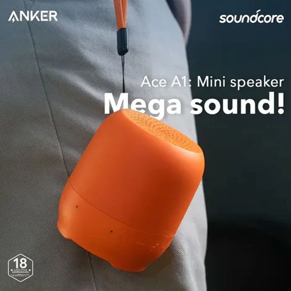 Anker Soundcore Ace A1 is a small portable speaker with a metallic finish and built-in button controls. It features LED indicators for power, Bluetooth, volume, and play/pause. The speaker offers 360-degree sound and a microphone. In terms of connectivity, you get Bluetooth for wireless connectivity and an aux-in port for wired connections. It also has a microSD card slot. The speaker can last up to 6 hours on normal usage.