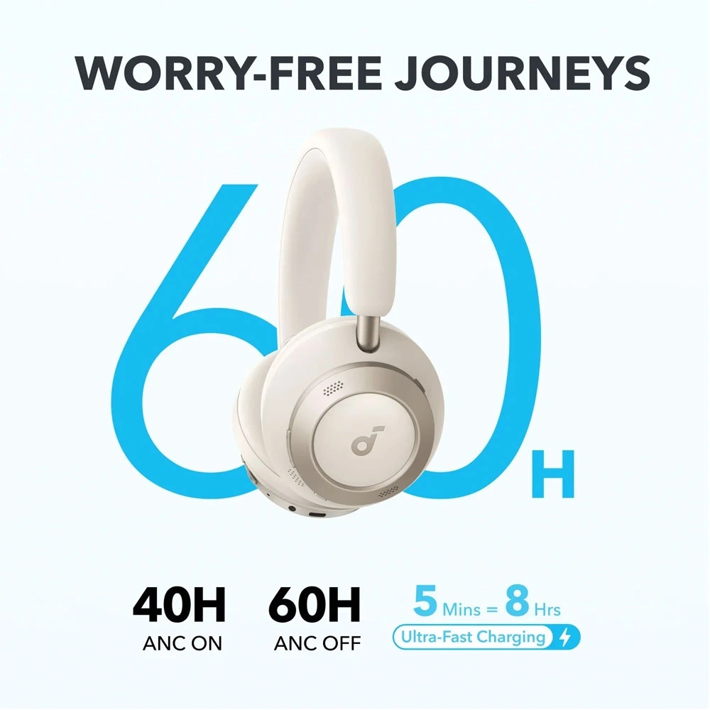 Long-Lasting Listening: Listen up to 40 hours with ANC and 60 hours without. Experience ultra-fast charging—just 5 minutes of recharge offers 8 hours of music.