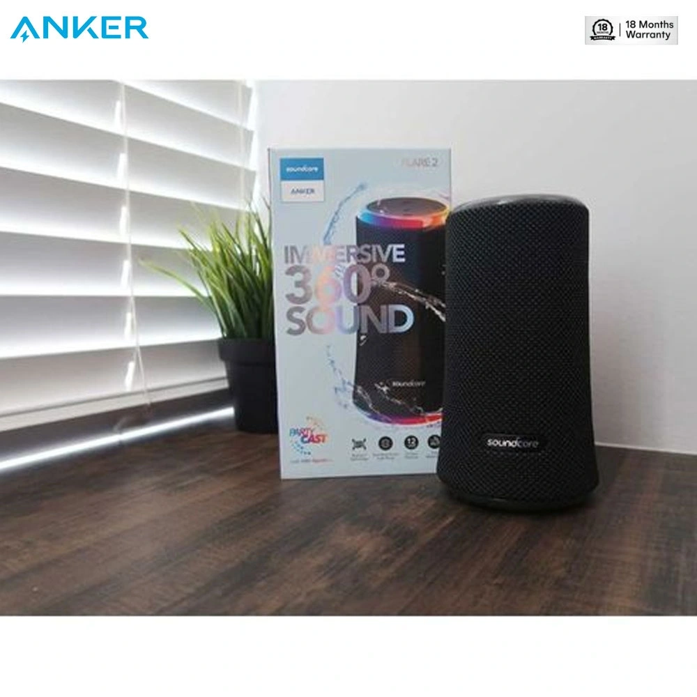 The Anker Soundcore Flare 2 is a stylish 360° Bluetooth speaker built for music lovers who want powerful sound and party vibes together. It delivers rich 20W audio with enhanced bass and immersive surround sound from every angle. The dual LED light rings create a beat-synced light show, perfect for home, outdoor, or party use. With IPX7 waterproof protection, it can handle rain, splashes, and poolside fun easily. PartyCast technology lets you connect multiple Soundcore speakers for a louder and more immersive experience. A great premium portable speaker choice for both indoor and outdoor entertainment. 🔥