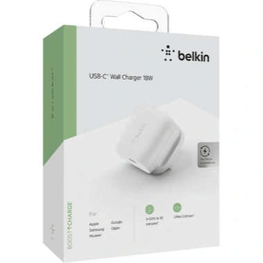 The Belkin USB‑C 18W Wall Charger (White) is a compact and efficient fast charger designed with USB‑C Power Delivery to charge your smartphones and tablets quickly. With 18W output, it enables fast charging for iPhone models from iPhone 8 and later, and many Android phones like Samsung Galaxy and Google Pixel series, as well as USB‑C tablets such as iPads. The lightweight and travel‑friendly design makes it easy to carry in your bag or pocket for home, office, or travel use. Its built‑in safety protections ensure stable and secure power delivery, making it a reliable daily charging solution for users who want fast, simple, and dependable USB‑C charging.