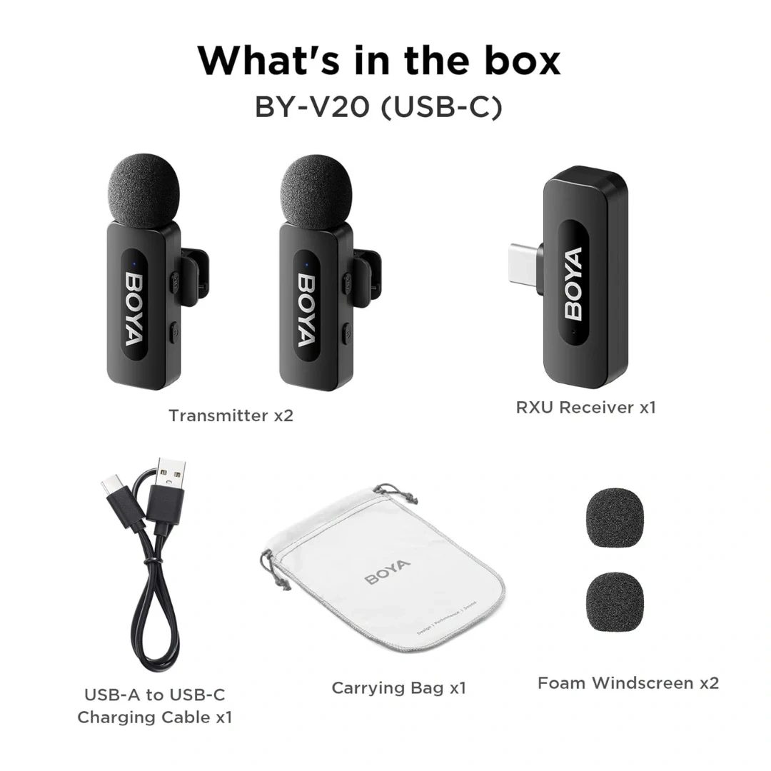 Boya BY-V20 Type-C Wireless Lavalier Microphone is designed for users who need clear, professional-quality audio in everyday use. With advanced noise reduction technology, it captures your voice accurately while minimizing background noise. This compact and lightweight mic features a plug & play Type-C receiver, making it ideal for Android smartphones, tablets, and USB-C devices. Whether you're recording videos, attending online meetings, teaching classes, or creating social media content, this microphone delivers reliable performance. Its wireless design ensures freedom of movement, making it perfect for Nepali users of all age groups who want high-quality sound without complicated setup.