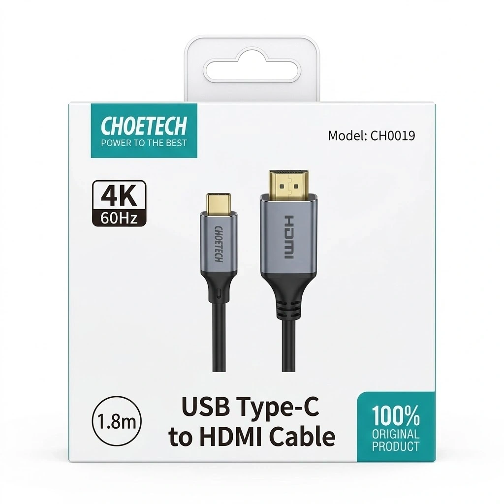 Elevate your visual experience with the Choetech USB-C to HDMI 4K Cable. Designed for professionals and tech enthusiasts, this high-performance cable allows you to mirror or extend your desktop to a secondary monitor with stunning 4K precision at 60Hz. Whether you are streaming your favorite shows, editing high-resolution video, or delivering a boardroom presentation, the CH0019 ensures a stable, high-speed connection every time. It is fully compatible with modern laptops, tablets, and smartphones featuring a Video-enabled USB-C port. With its sleek, durable design and generous 1.8-meter length, this cable is the ultimate solution for a clean, efficient, and professional workspace.
