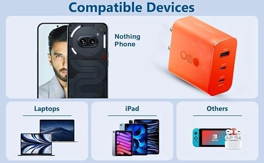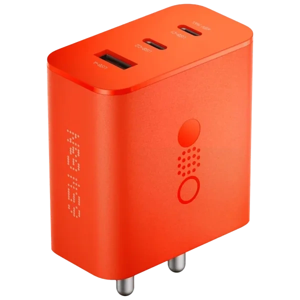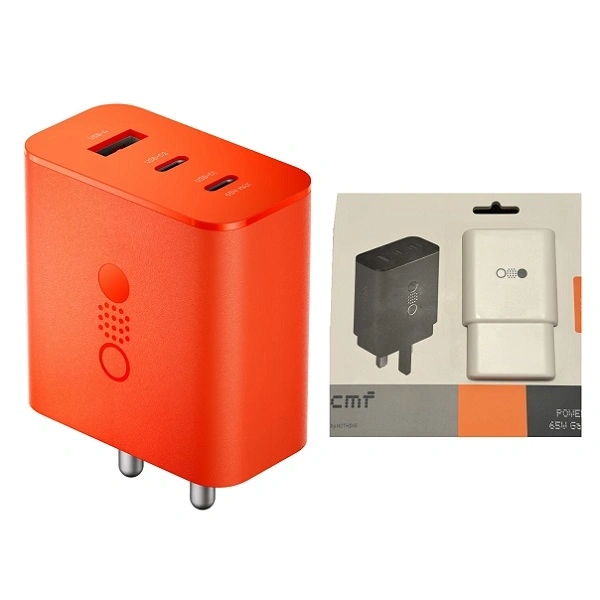 The CMF Nothing 65W Power Adapter C332 (Orange) is a powerful multi‑port GaN wall charger designed to deliver fast, efficient, and safe charging for a wide range of devices. With two USB‑C ports and one USB‑A port, it can charge multiple devices simultaneously — from smartphones like Nothing Phone, iPhone, Samsung Galaxy, Pixel, to tablets like iPad and even USB‑C laptops that accept up to 65W PD charging. Its advanced GaN technology allows it to stay compact and cool, making it perfect for everyday use at home, office, or travel. The built‑in safety protections and broad compatibility with fast‑charging protocols make it suitable for tech‑savvy users who want one reliable charger for all their gadgets.