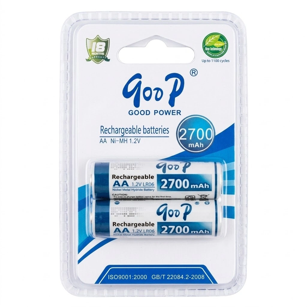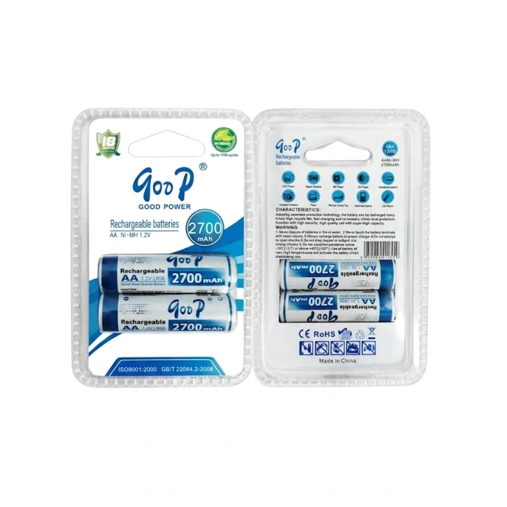 The Goop AA 1.2V 2700mAh Rechargeable Battery (2Pcs Pack) is designed to provide long-lasting and reliable power for everyday electronic devices. With a high capacity of 2700mAh, these batteries can run devices for longer periods compared to standard batteries.