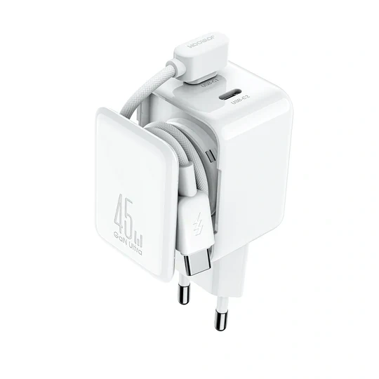 The Joyroom 45W PD Fast Charger JR-TCL05 is a compact dual-port GaN wall charger delivering up to 45 W of fast power through USB-C and USB-A (A + C) ports with support for PD 3.0, QC 5.0, PPS and other protocols, compatible with a wide range of USB-C and USB-A devices including iPhone, Samsung Galaxy, Google Pixel, iPad, tablets, laptops with PD support and other gadgets—making it ideal for everyday home, office, or travel use—so if you’re looking for a powerful and versatile charger to efficiently and safely power two devices at once, this 45 W Joyroom charger is a reliable choice.