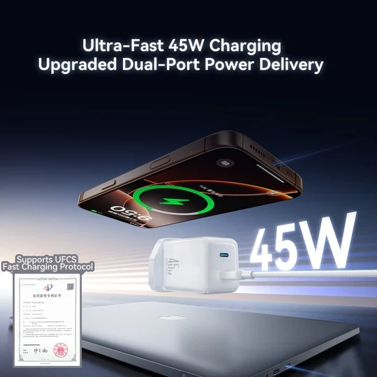 ⚡ 45W High-Speed Output – Fast charging up to 45 W to rapidly power compatible devices.