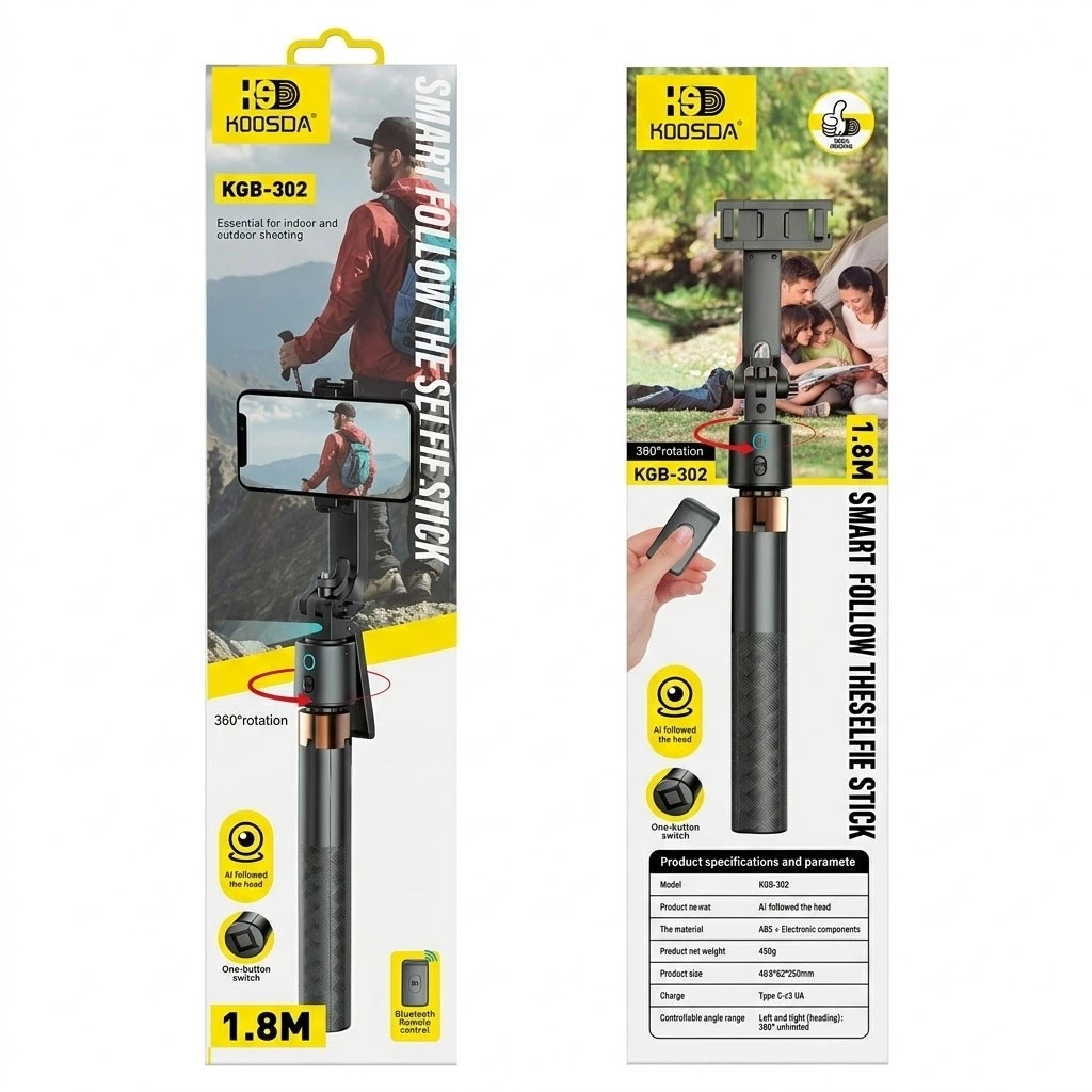 Elevate your content creation with the Koosda KGB-302 Smart Follow Selfie Stick, now available . This all-in-one gadget combines a sturdy 1.8m extendable pole with advanced AI face-tracking technology, making it the perfect companion for solo vloggers and travelers across Nepal. Whether you are recording TikToks, attending online classes, or capturing family trekking memories, the integrated 360-degree rotation ensures you are always in the frame. Built with premium ABS material and a steady tripod stand, it offers professional-grade stability. Its plug-and-play Bluetooth connectivity and Type-C charging make it incredibly user-friendly for all age groups. Get the ultimate tools for your smartphone and record like a pro today!