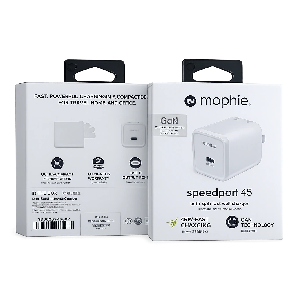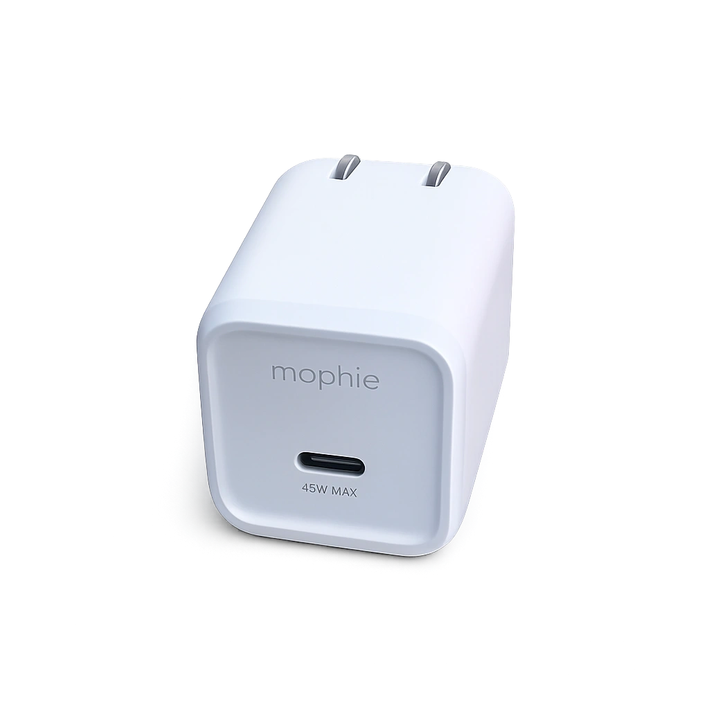 The Mophie Speedport 45 USB-C Charger is a compact dual-port GaN wall charger delivering up to 45 W of fast USB-C Power Delivery to quickly power your iPhone, Samsung Galaxy, Google Pixel, iPad, MacBook Pro 13 and other USB-C PD devices, while its foldable design and smart power distribution make it ideal for home, office or travel—so if you want a powerful yet compact charger to reliably charge two devices safely and efficiently, this 45 W GaN adapter is a solid choice.
