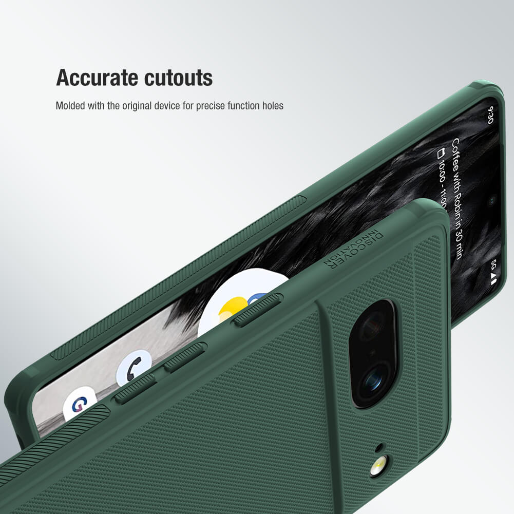 Nillkin Super Frosted Shield Pro Matte cover case for Google Pixel 7 The matte cover of this Nillkin case was made by high precision injection with imported environmentally friendly PC materials. The case is coated on both sides with dustless matte UV painting technology which looks and feels great. Nillkin frosted is rigid enough to offer great protection, yet flexible enough not to break off. The surface is water-resistant and dustproof. Also, it does not collect fingerprint smudges or skid marks. The case feels great in your hands and you can hold it freely and comfortably.