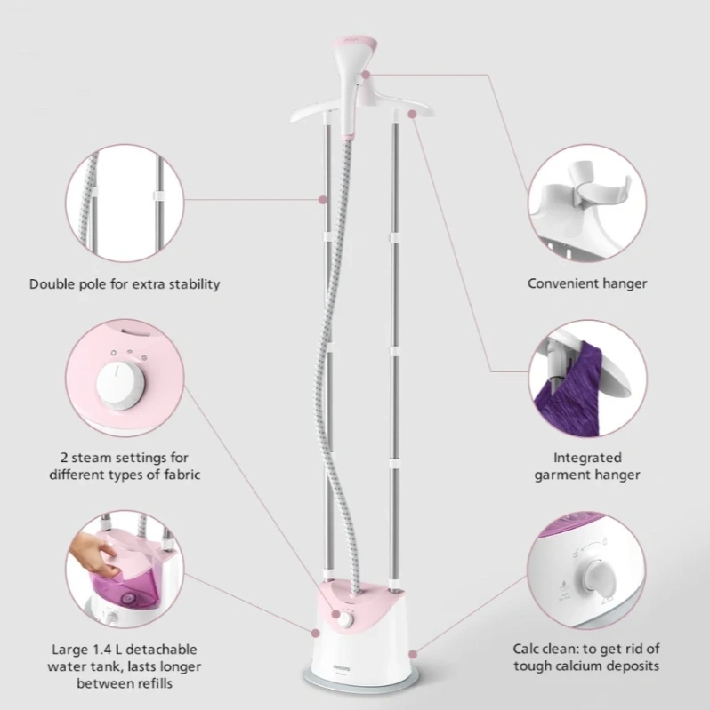 यो Philips Garment Steamer GC485 housewives र busy users का लागि ideal छ। Fast steam output ले कपडाका wrinkles तुरुन्त हटाउँछ। Adjustable steam settings ले cotton, silk, synthetic सबै fabrics को लागि suitable छ। Compact design ले storage र handling सजिलो बनाउँछ।