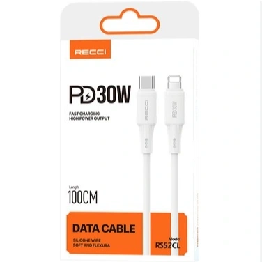 The Recci RS52CL USB-C to Lightning Cable is a fast-charging and data-capable cable designed for modern Apple devices with Lightning ports. Built to support up to 30 W Power Delivery, this cable can rapidly top up your iPhone or iPad when used with a compatible USB-C PD charger. The soft silicone construction makes it flexible, lightweight, and resistant to bends and tangles, while its 1 m length fits well for everyday charging and syncing tasks. Whether at home, office, or on the go, the RS52CL offers a reliable way to power and connect your Lightning-based device.