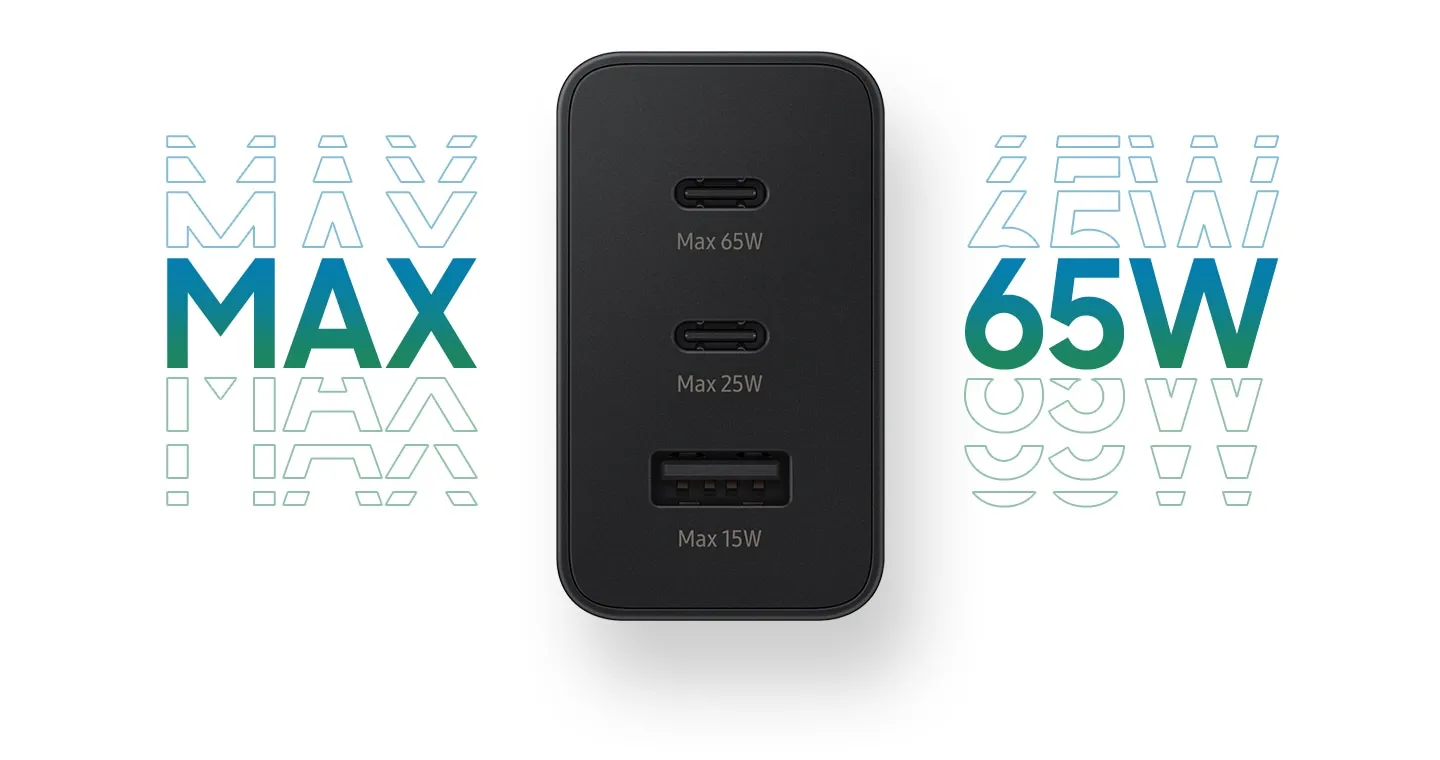 Features : (USB-C1) Super Fast Charging 2.0 max. 45 W, PD 3.0 PDO max. 65 W, PPS max. 45 W / (USB-C2) Super Fast Charging max. 25 W, PD 3.0 PDO,PPS max. 25 W / (USB-A) AFC,QC max. 15 W / (C1+C2) 40 W + 25 W / (C1+A) 50 W + 15 W / (C2+A) 25 W + 15 W / (all) 35 W + 25 W + 5 W