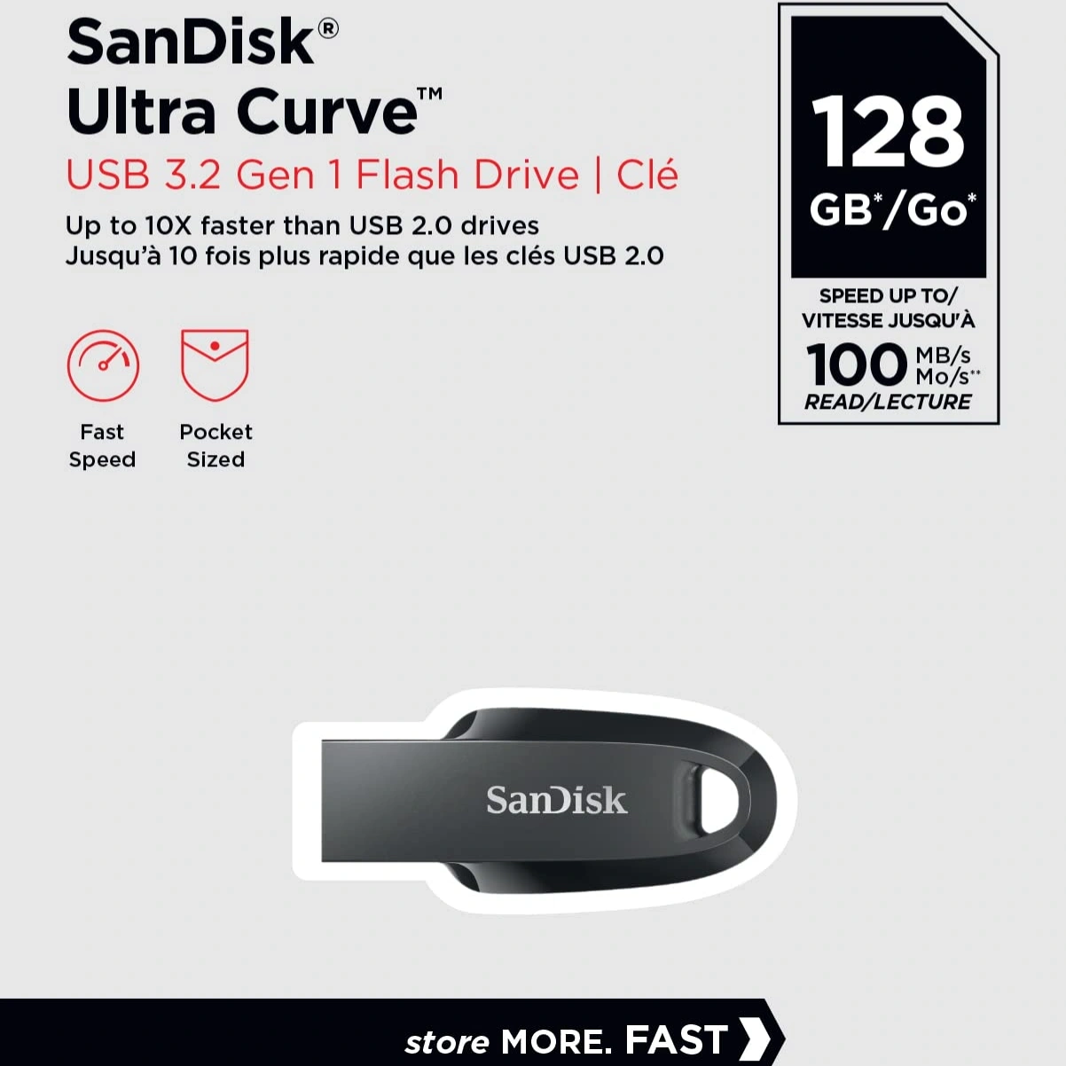 The SanDisk Ultra Curve USB 3.2 Flash Drive is a reliable and compact storage solution designed for fast everyday file transfers. With USB 3.2 high-speed performance, it allows you to quickly move photos, videos, documents, and large files between devices. Its lightweight curved design offers comfortable handling and easy portability, making it ideal for students, professionals, and daily users. This flash drive supports plug-and-play functionality, so you can start transferring files instantly without installing software. It works with laptops, desktop computers, smart TVs, gaming consoles, and other USB-enabled devices. Whether for work, school, or personal use, it provides a simple and dependable way to carry your important digital data anywhere.