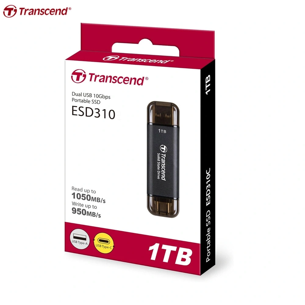 The ESD310 is Transcend's smallest portable SSD that delivers a lightning-fast transfer rate of 10 Gbps and a capacious storage capacity of up to 2TB, allowing you to transfer vast amounts of files in the blink of an eye. With the inclusion of both USB Type-A and Type-C connectors in a single drive, the ESD310 is a convenient and efficient external storage option that you won't want to miss out on!