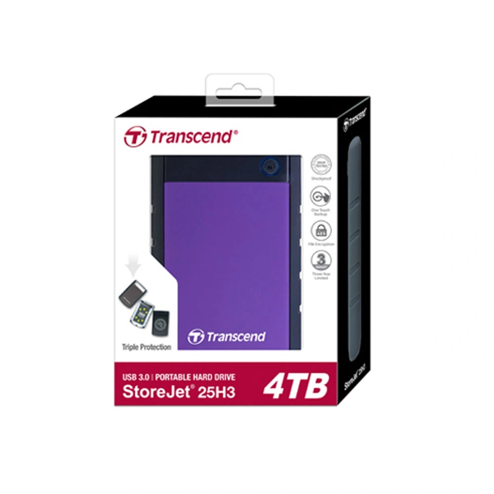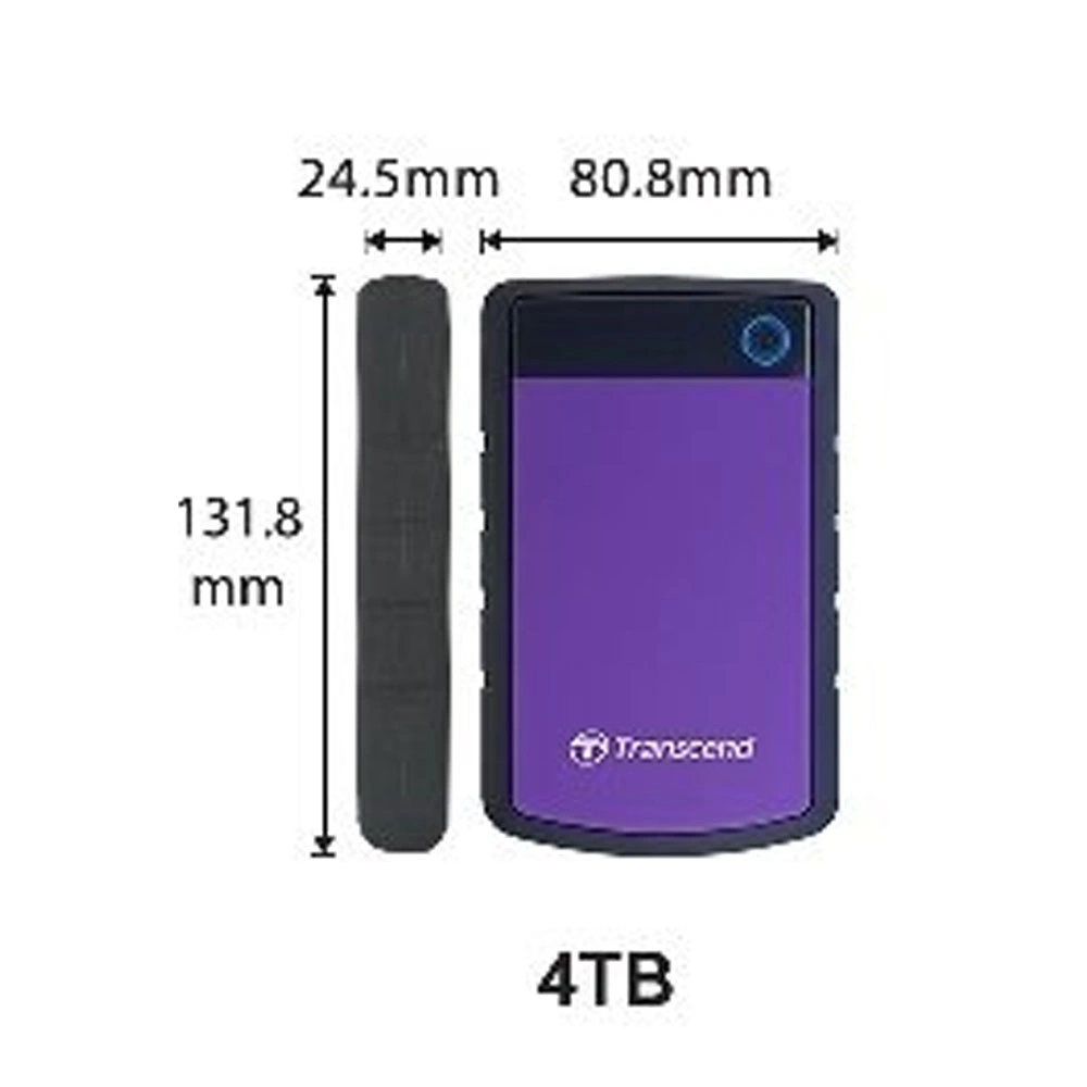 Transcend's StoreJet 25H3 ruggedized portable hard drive combines supreme shock-resistant qualities with the USB 3.1 Gen 1 interface, allowing for ultra-fast file transfers and the highest level of anti-shock protection. With up to 4TB storage capacity, the StoreJet 25H3 eliminates all fears of running out of storage.