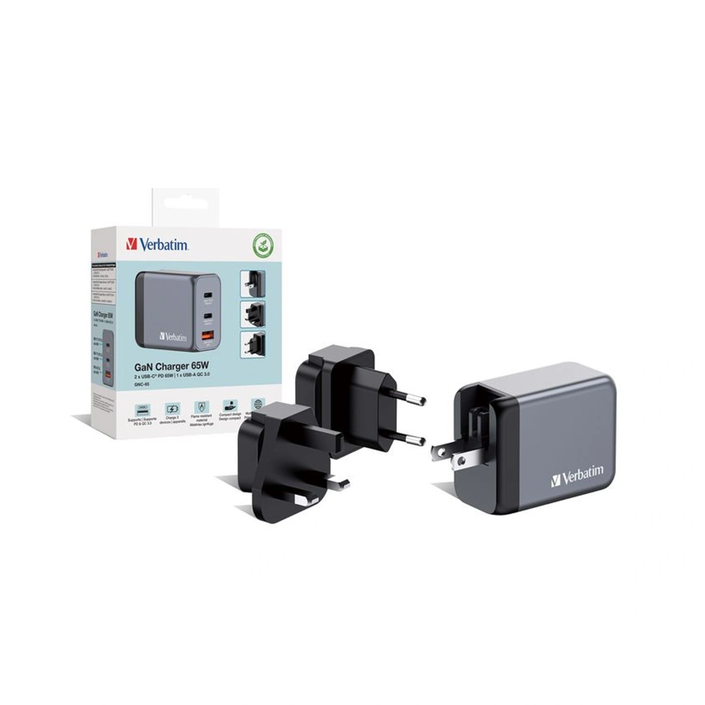 The Verbatim 65W GaN 3-in-1 Charger is a powerful and compact fast charger designed to charge laptops, smartphones, tablets, and other USB devices simultaneously with advanced GaN technology for better efficiency and safety. Compatible with USB-C laptops (MacBook, Dell, HP, Lenovo), iPhone, Samsung Galaxy, iPad, tablets, power banks, earbuds, and other USB-powered devices. Ideal for students, office professionals, travelers, and multi-device users. If you are looking for a compact yet powerful fast charger to handle multiple devices at once, this 65W GaN charger is a perfect choice for you.