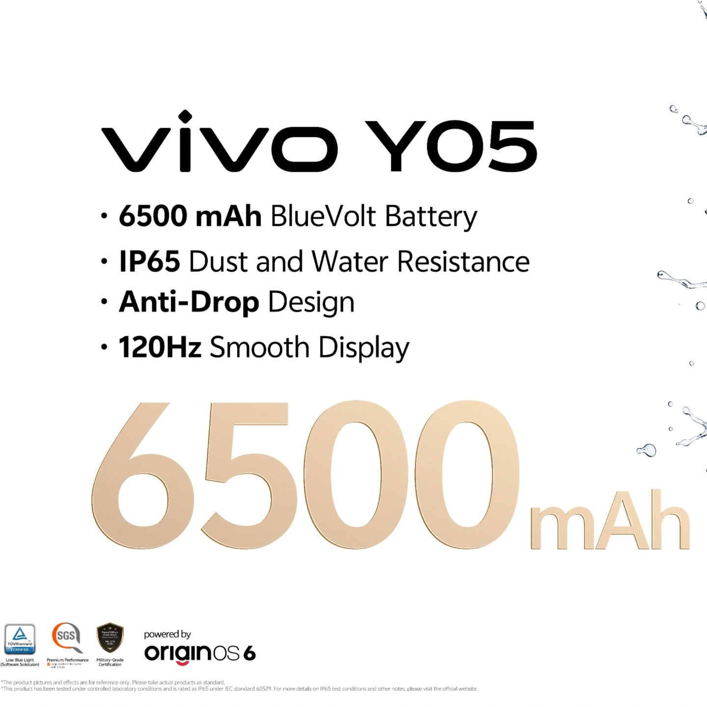 The Vivo Y05 V2556 smartphone is a powerful and budget-friendly device designed for everyday users in Nepal. It features a large 6.74-inch 120Hz display that offers smooth scrolling and an enjoyable viewing experience for videos, browsing, and social media. Powered by an octa-core processor, it delivers reliable performance for daily tasks and light gaming. The massive 6500mAh battery ensures long-lasting usage, perfect for busy lifestyles without frequent charging. With dual SIM 4G support, it works seamlessly with Nepali networks. Ideal for students, professionals, and general users, this smartphone combines performance, durability, and value in one complete package.