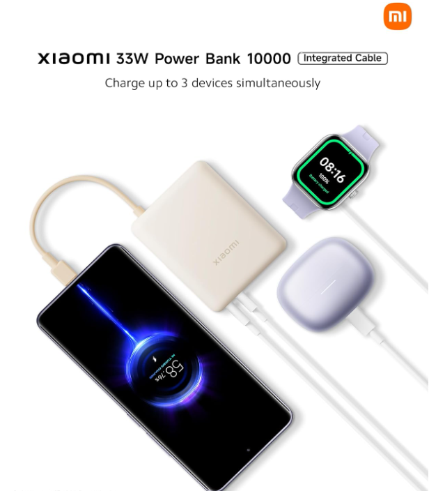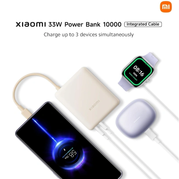 The Xiaomi 10000mAh 33W Power Bank is a compact yet powerful fast-charging solution designed for modern smartphones and gadgets. It features a built-in USB-C cable, eliminating the need to carry extra wires, and supports up to 33W fast charging for compatible devices.