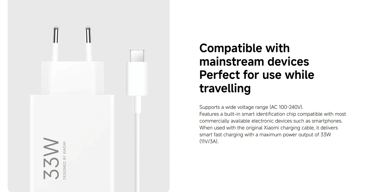 The Xiaomi 33W Charging Combo (Type-A) is a reliable and efficient charging solution for everyday use. Delivering up to 33W fast charging power, it ensures your devices charge quickly and safely. Built with a smart chip, it provides multiple layers of protection including overvoltage, overcurrent, short circuit, overheating, and even lightning strike protection. Compact and durable, this charger is designed for long-lasting performance and peace of mind. If you’re looking for a safe and high-speed Xiaomi charger, this combo is the perfect choice.